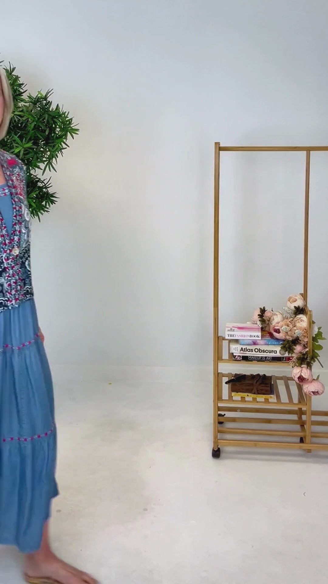 - Sleeveless tiered dress with embroidered details
